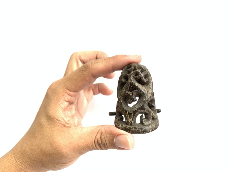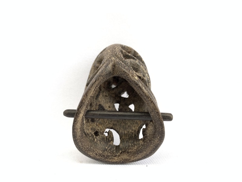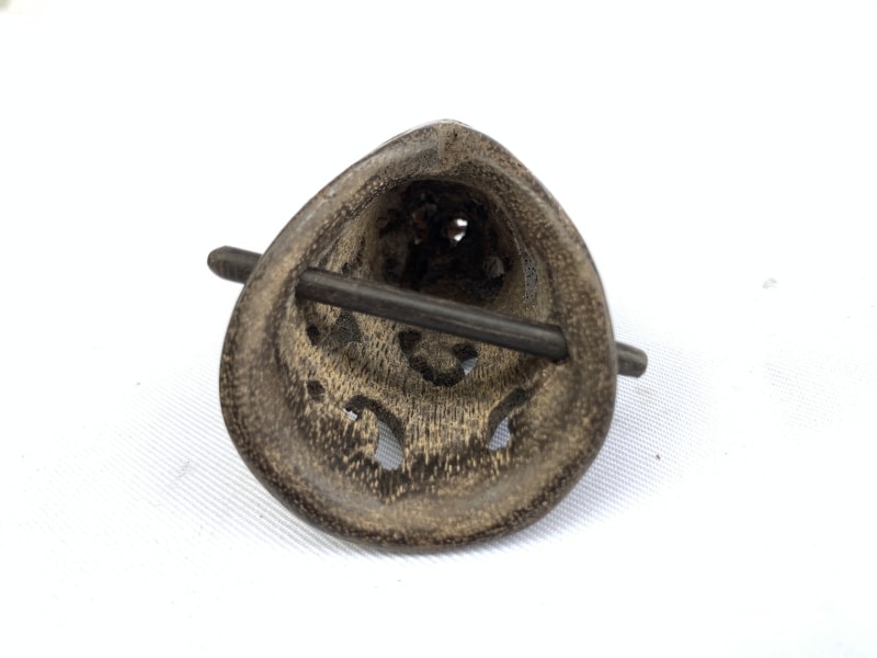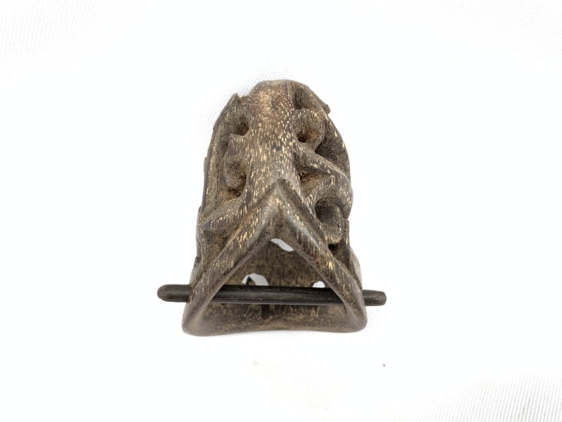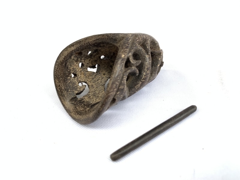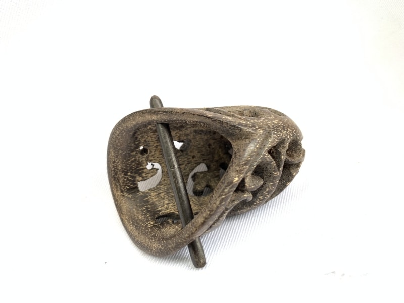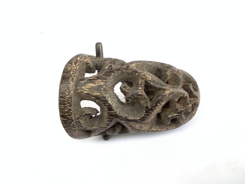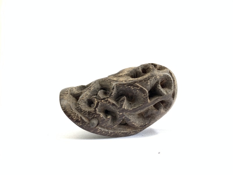 Rare pattern, Buah Berasok / Creeper Vine genital palang crossbar / barbell piercing / Ampallang apadravya penis piercing, carved from Billion / Ironwood. Circa 1960, excellent condition. The Palang is a piercing made across (horizontally) the surface of the glans. Therefore, It can be made through the urethra or above or below it.