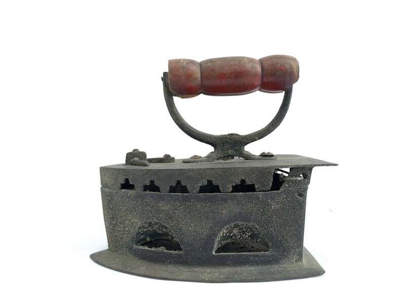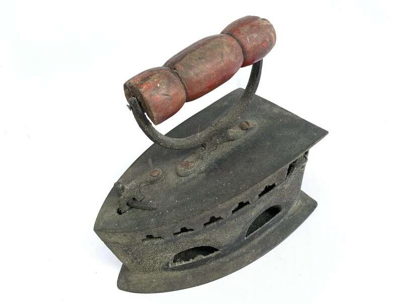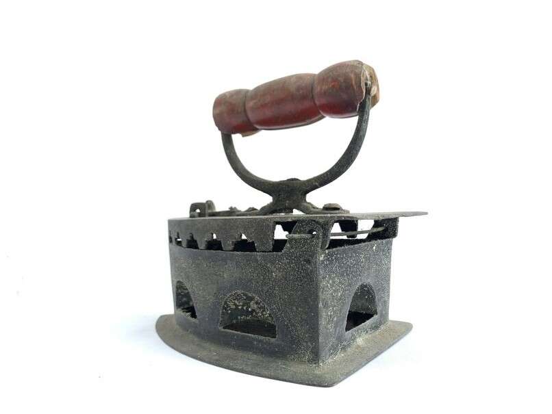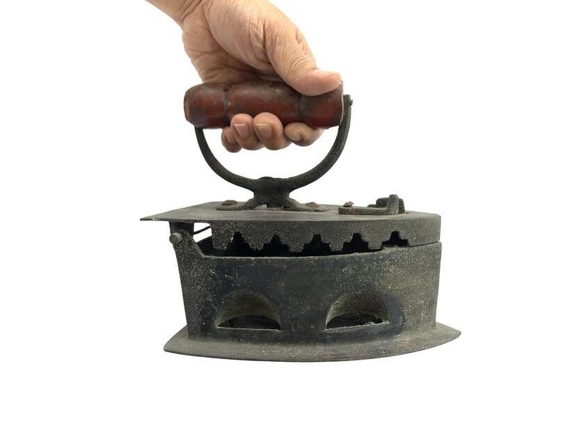 Antique Charcoal Iron / Vintage Iron, XL piece, a complete set. Brass iron. More antiques.