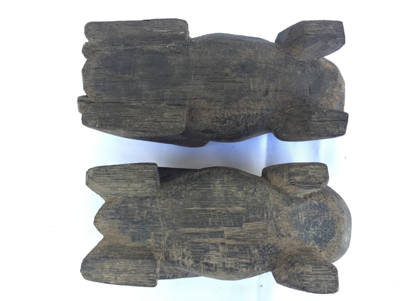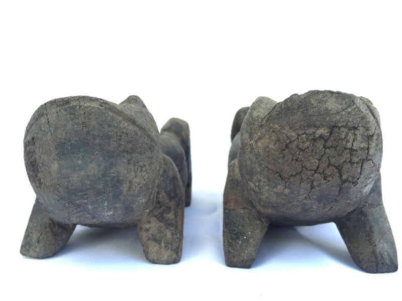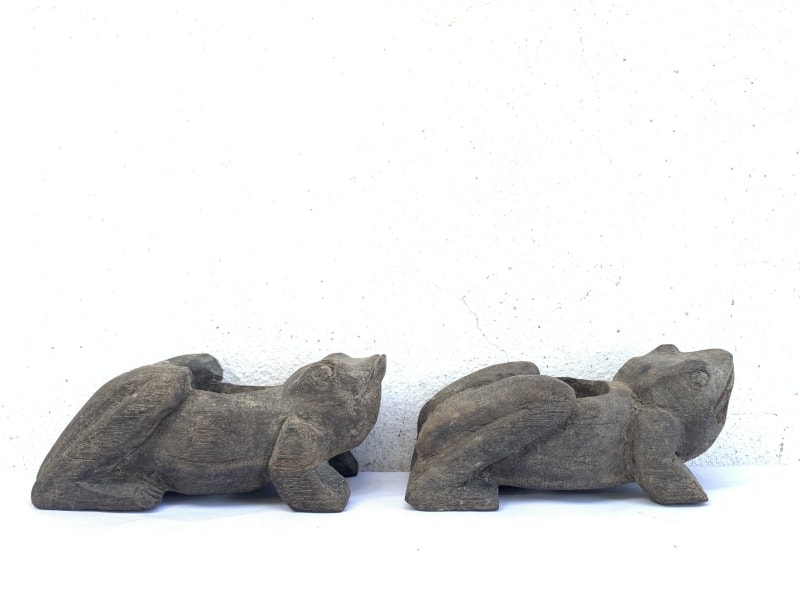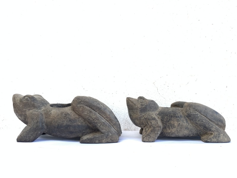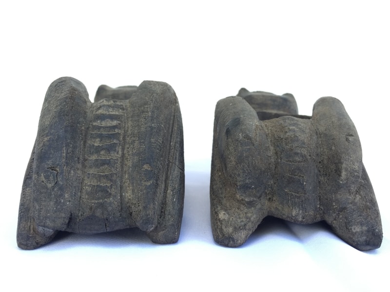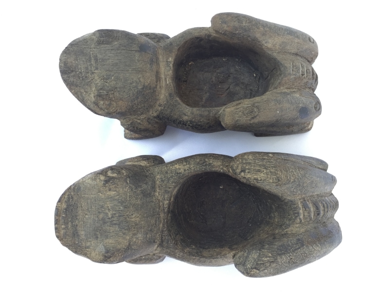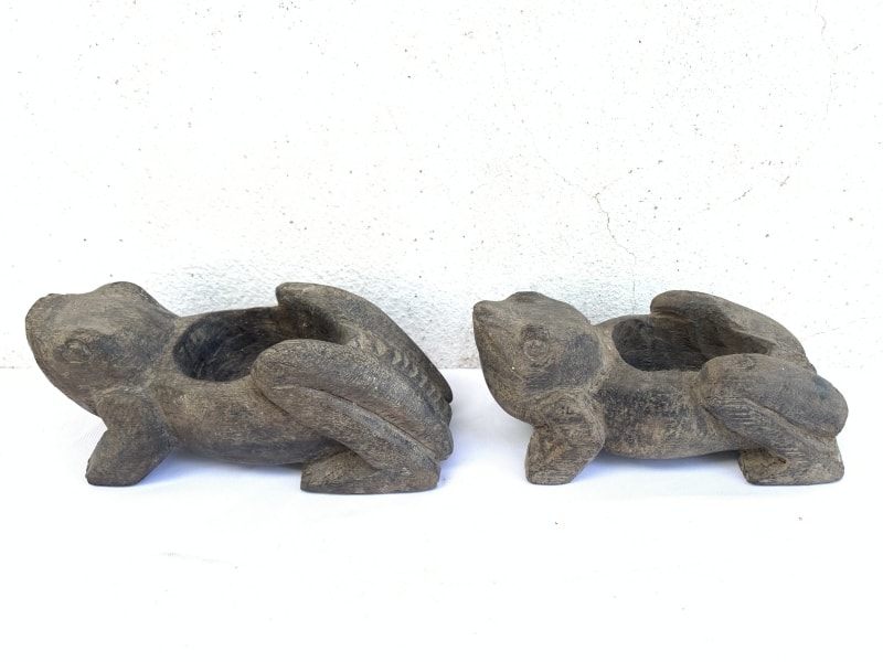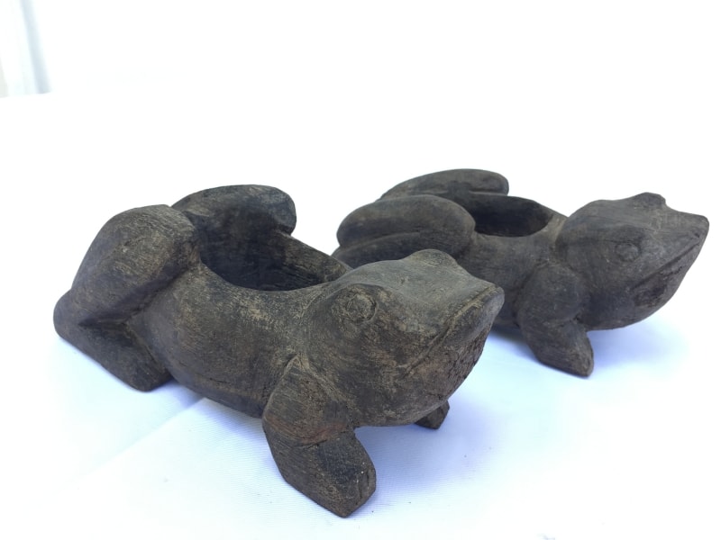 A pair of old rarely seen Tempat Kemenyan Dayak/ Incense Burner, carved entirely from worlds hardest wood, the Belian/Iron/Billionwood. Circa 1960. Suitable as ashtray if u like, will last many lifetime! Beautiful original condition, lines due to old age are visible but otherwise in very good condition.