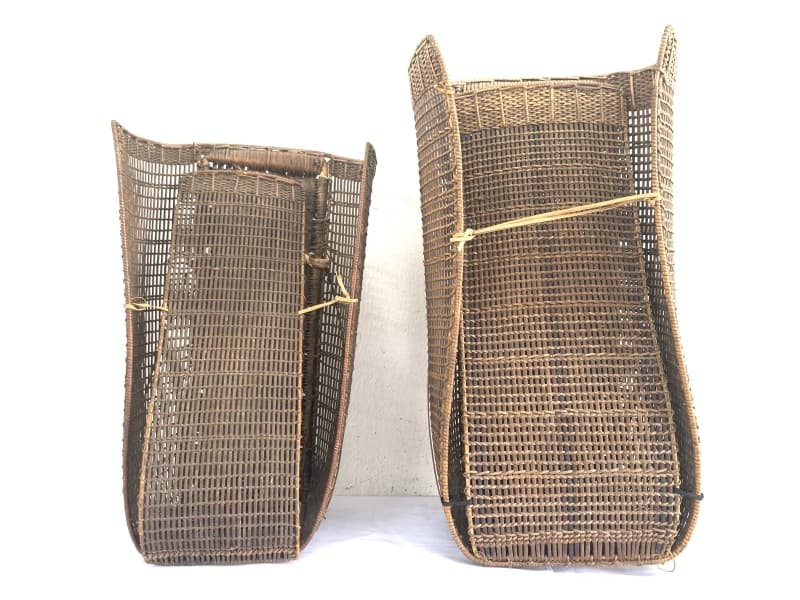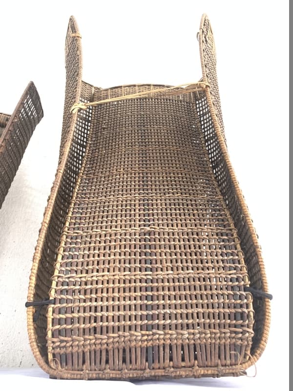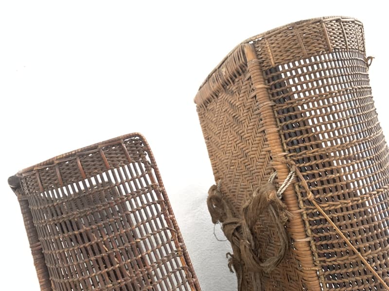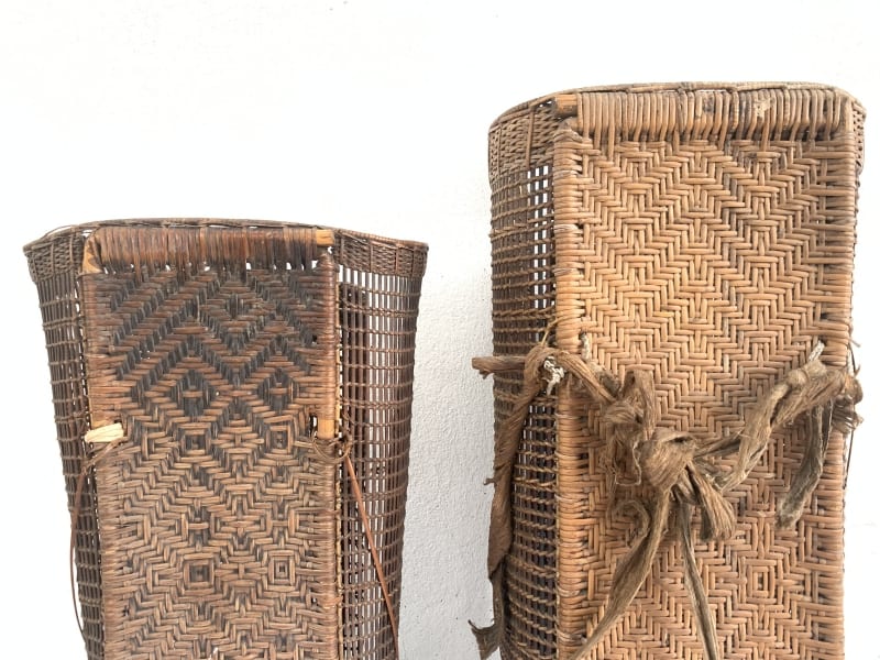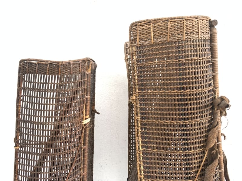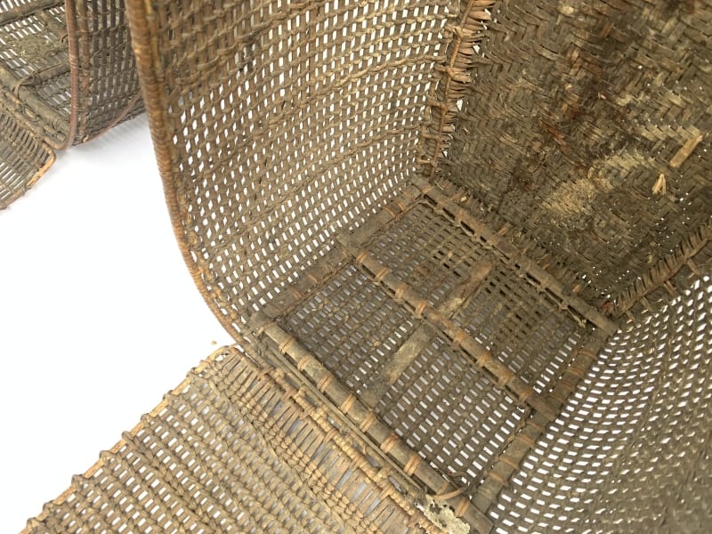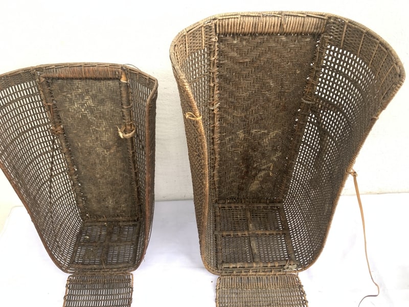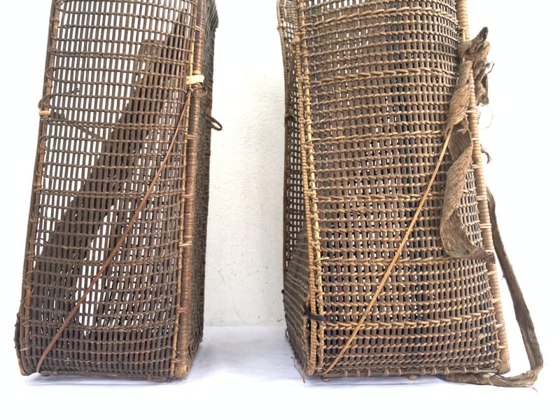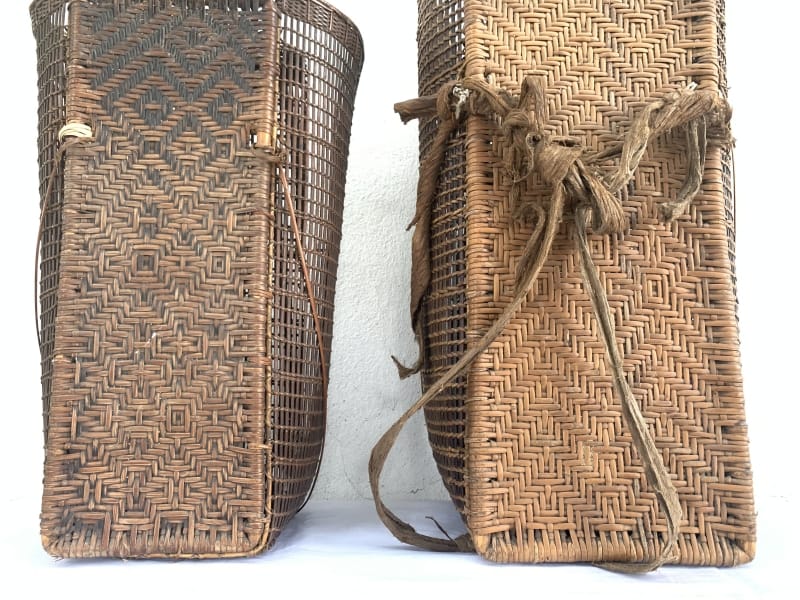 Rattan Backpack of Borneo, this antique pair is in good antique condition, and surely more beautiful in real life. Museum pieces, rare fiber art from the 1950s.